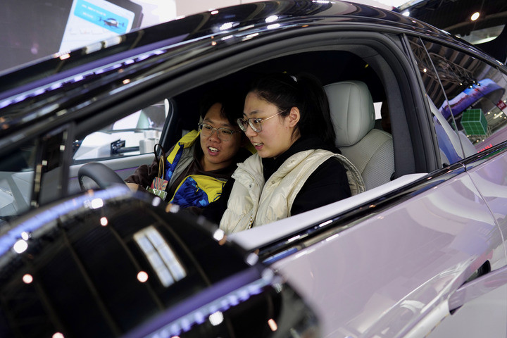 参观者在体验新车。新华社发(那宇奇 摄)